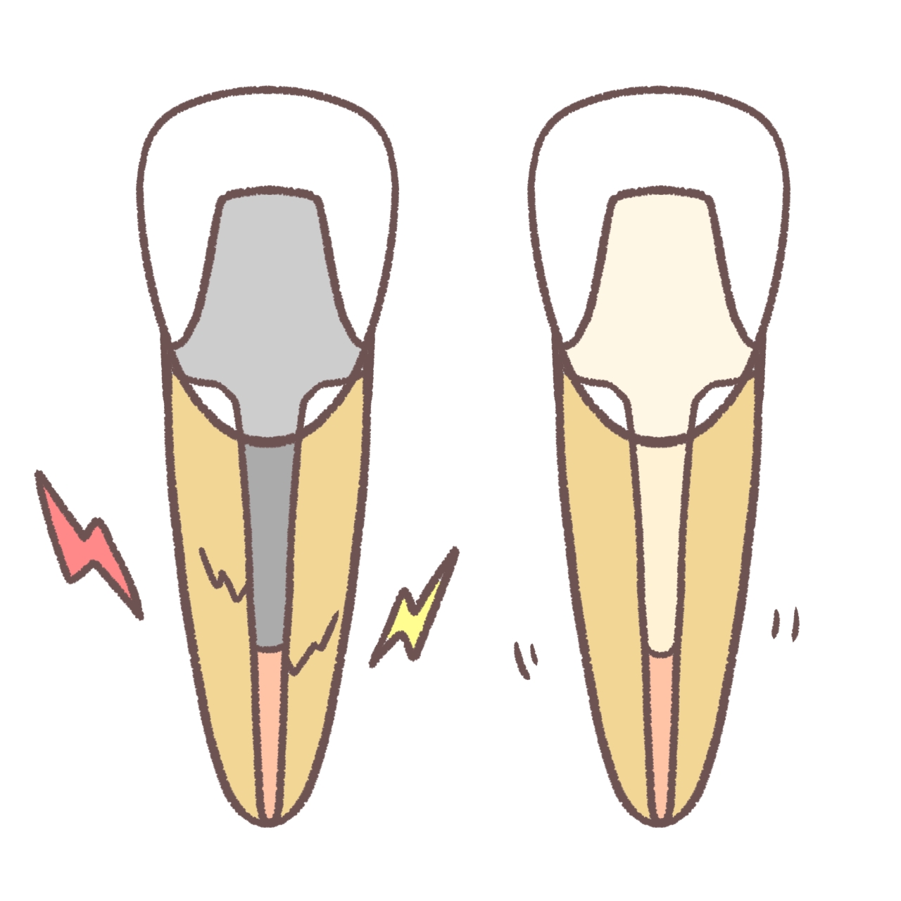 - 金属の硬さが歯根に伝わり、歯が割れる(歯根破折)リスクがある
